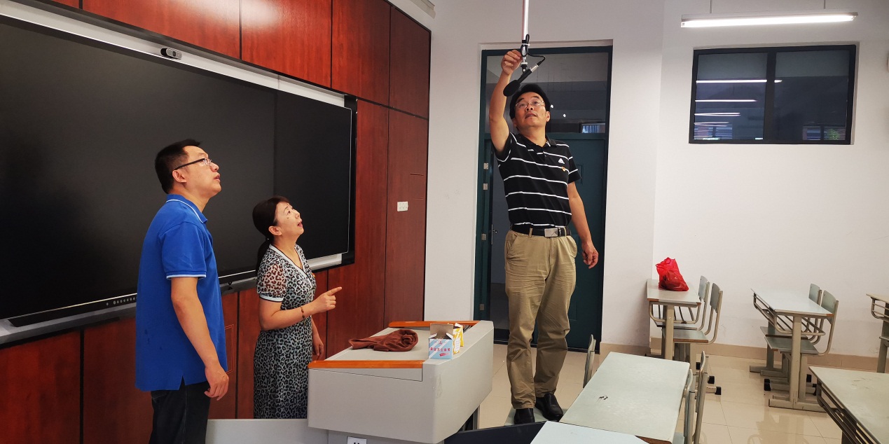 暑假期间,教学技术部党员带头参与辽河路校区瑶光楼37个智慧教室的改造项目,与施工方进行对接,对设备进行清点,及时解决出现的问题。为保障开学后智慧教室能够顺利投入使用,在项目尾声阶段,支部全体党员放弃休息时间,分批次对新改造的教室进行全面系统的设备检查调试,并协助物业管理人员对教室进行全面的清洁和消杀。