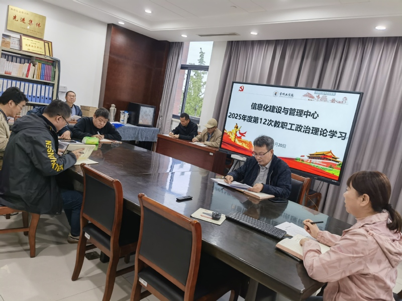 10月20日下午,信息化建设与管理中心召开2025年度第十二次教职工政治理论学习会,会议由中心党支部书记何中胜主持,中心全体教职工参加。